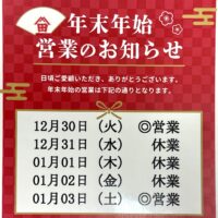 当店の年末年始の営業をご案内します。誠に心苦しいご案内ですが、お米や魚の想像を遥かに超える値上がりにより、令和8年1月からメニュー価格を改定させていただきます。どうかご理解賜りますよう宜しくお願い申し上げます。